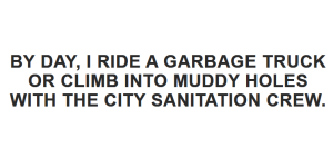By day, I ride a garbage truck or climb into muddy holes with the city sanitation crew. Broken mains, overflowing dumpsters, burst pipes—we get it all. Most nights, it feels barely held together.