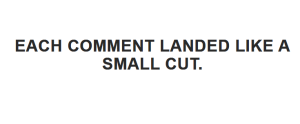 Each comment landed like a small cut — not deep enough to draw blood, but enough to sting. Enough to make me doubt myself.