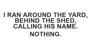 At first, I thought he was hiding. He loved that game. I ran around the yard, behind the shed, calling his name.