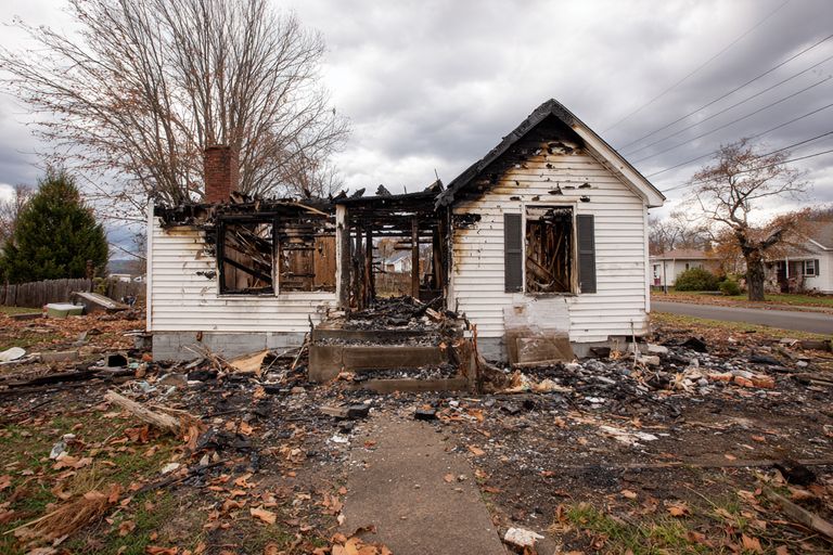 The white siding was stained black with smoke. Windows were shattered, their glass scattered across the front yard like deadly confetti. Part of the roof had collapsed inward, leaving jagged wooden beams exposed to the sky like broken ribs.