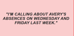 “Hello Ma’am, I’m calling about Avery’s absences on Wednesday and Friday last week. We didn’t receive a note, and I wanted to make sure everything’s okay.”