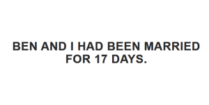 Ben and I had been married for 17 days.