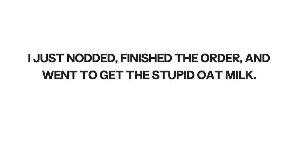 I wanted to tell her customers mattered more than oat milk, but I nodded, finished the order, and went to get it.