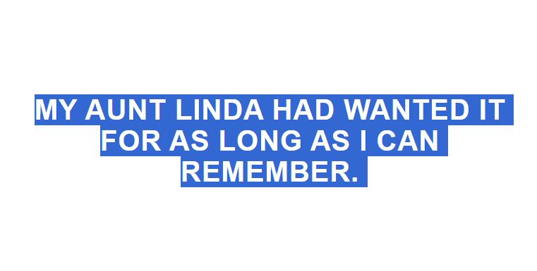 My Aunt Linda had wanted it for as long as I can remember.