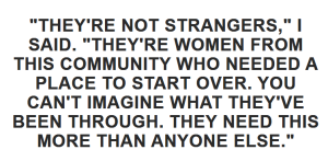 “They’re not strangers,” I said. “They’re women from this community who needed help. You have no idea what they’ve been through.”