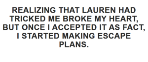 Once I accepted that Lauren had tricked me, I started planning my escape.