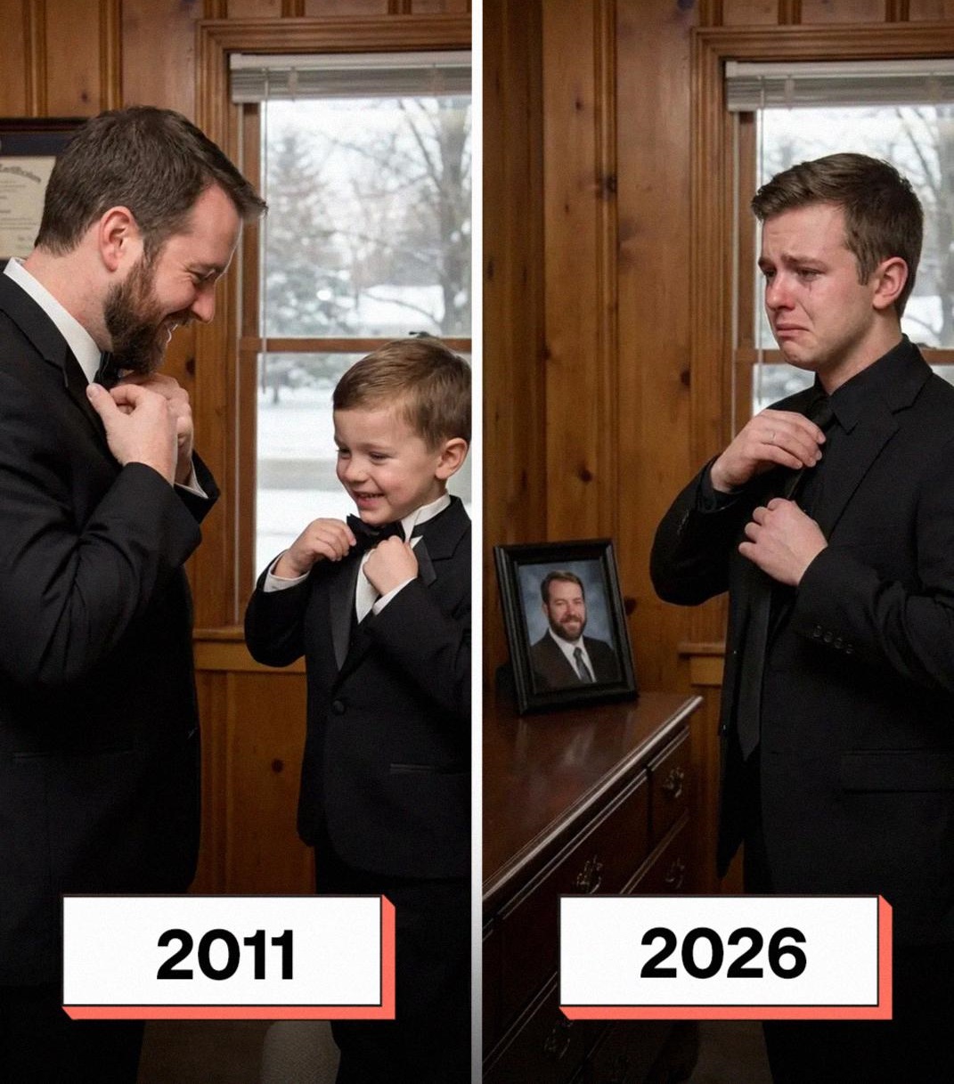 The funeral was three days later. I wore his old tie, the navy one with thin gray stripes. He’d taught me how to knot it when I was 16, his hands guiding mine through the loops.