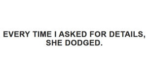 Every time I asked for details, she dodged.