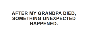 The days after the funeral blurred together. I stayed with Grandma, helping her sort through his things. His books. His clothes. The reading glasses on the nightstand.