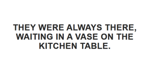Some days, they were wildflowers he’d picked from the roadside. Other times, tulips from the farmer’s market. Often, roses from the florist in town.