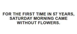 And for the first time in 57 years, Saturday came without flowers.