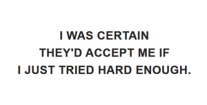 I was certain they’d accept me if I just tried hard enough.