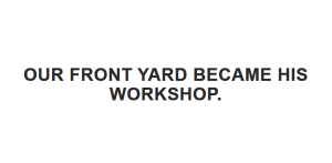 Our front yard became his workshop.
