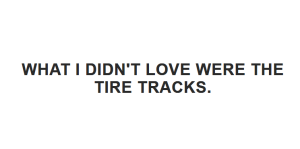 What I didn’t love were the tire tracks.