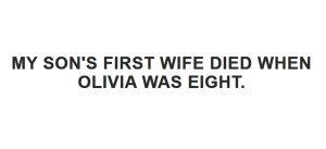 My granddaughter, Olivia, is 15 years old. Her mother, my son’s first wife, died when Olivia was eight. Cancer. The aggressive kind that doesn’t give you time to say proper goodbyes.