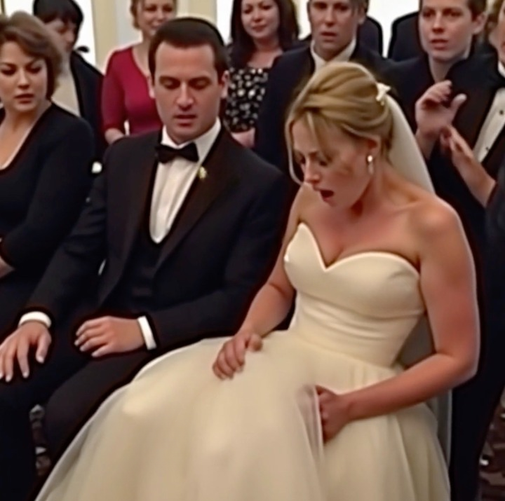 During the wedding ceremony, an unexpected movement was noticed beneath the bride’s gown — leaving the groom visibly startled.