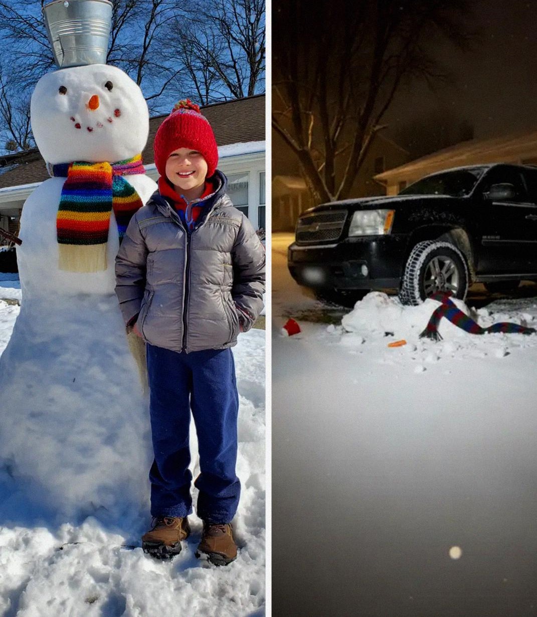 My Son Kept Building a Snowman, and My Neighbor Kept Running It Over with His Car – So My Child Taught the Grown Man a Lesson He’ll Never Forget